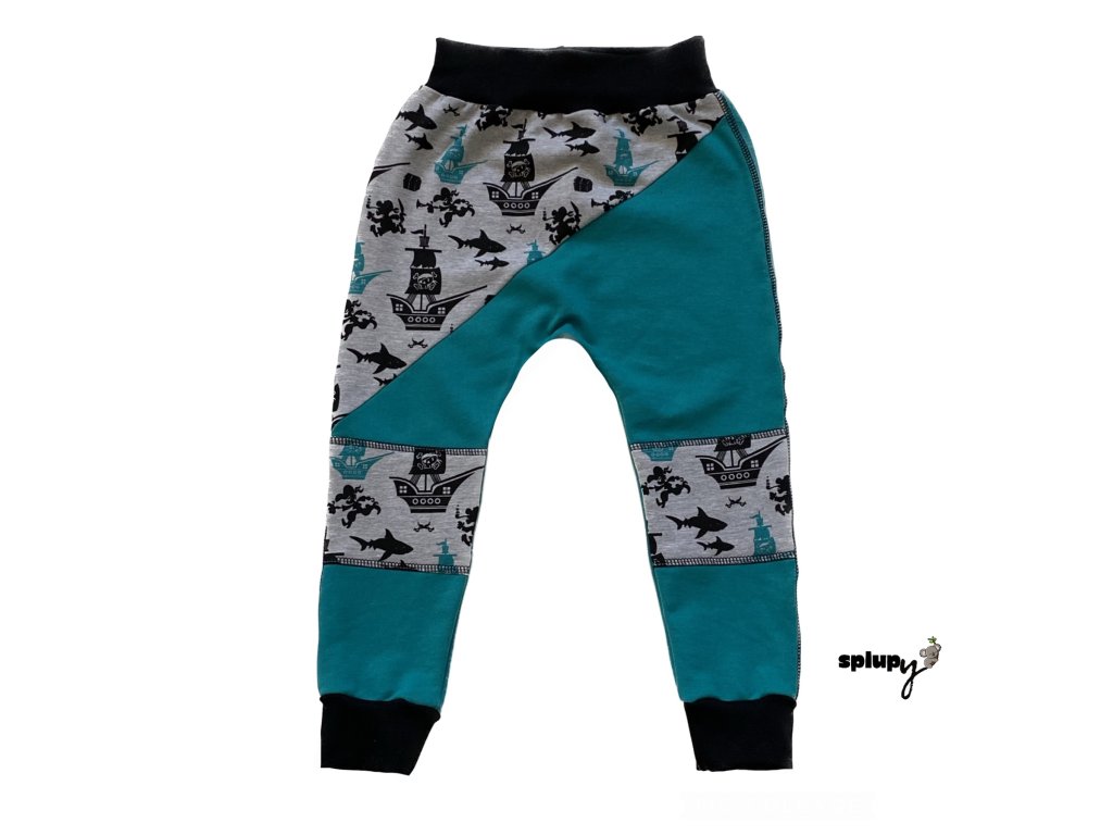 Dětské tepláky baggy volnějšího střihu se sníženým sedem pro dokonalé pohodlí. Ušito z teplákoviny, vnitřní strana nemá chloupek.